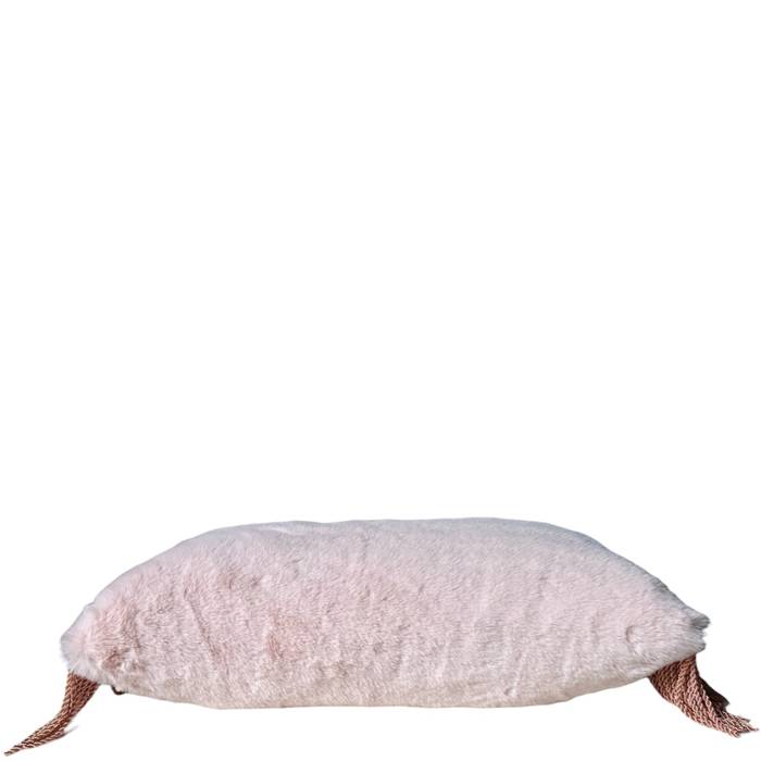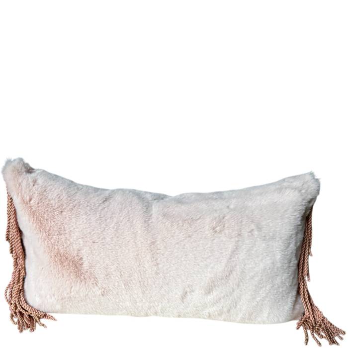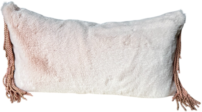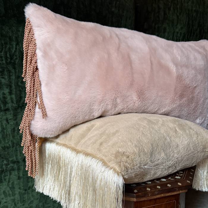 Lush vegan Fur in a pale blush shade with lateral bullion fringe in a deeper rose shade.